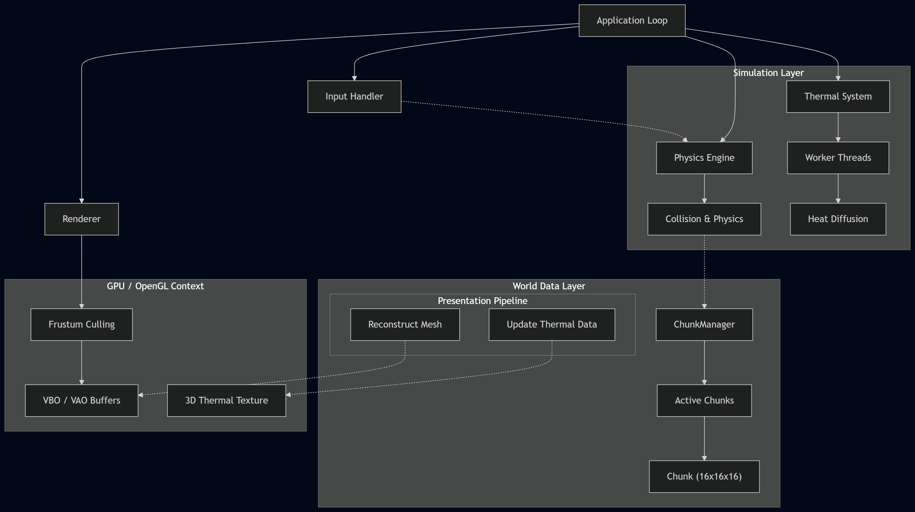 - Worker Thread Pool: Asynchronous job system for non-blocking chunk generation and mesh building.