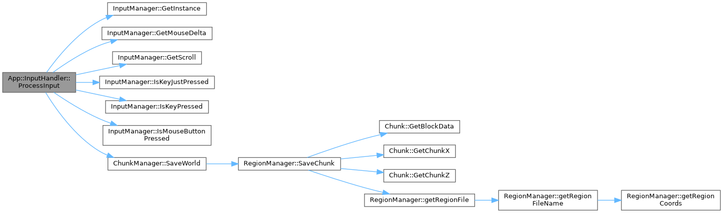 Processes keyboard and mouse input, managing player movement, camera state, and world interaction.