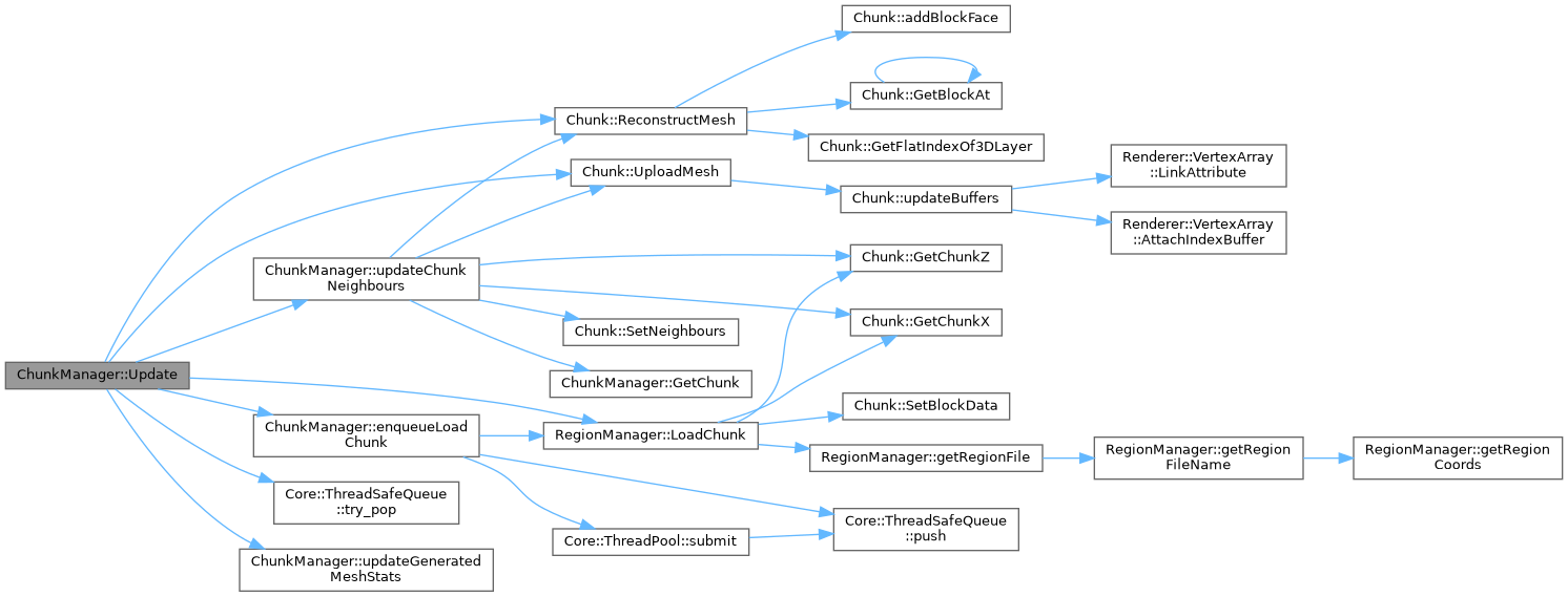 | | Core lifecycle loop. Synchronizes asynchronous chunks and manages the active render radius.