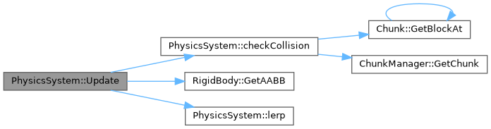 | static void | Update (RigidBody &objRigidBody, float fDeltaTime, const ChunkManager &objChunkManager, bool bFlyMode=false) |