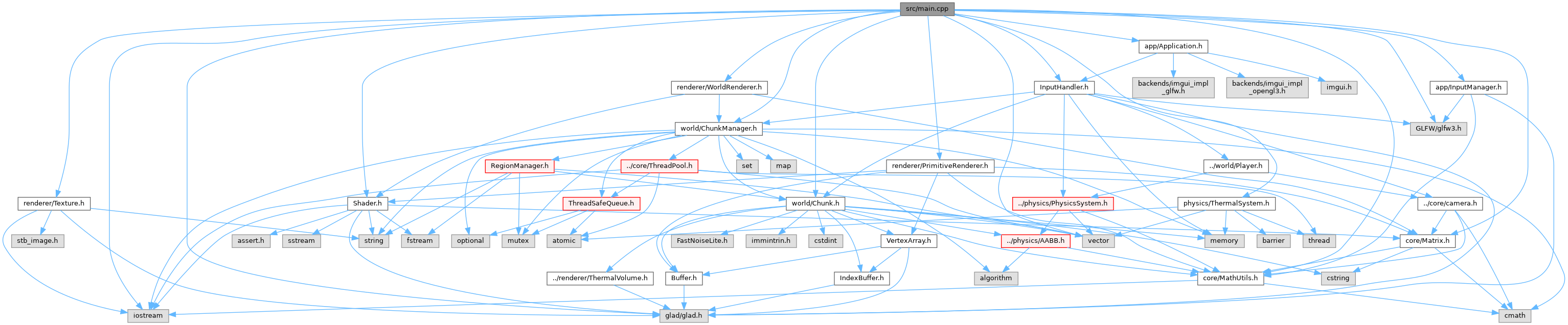#include <iostream>#include <vector>#include <glad/glad.h>#include <GLFW/glfw3.h>#include <core/MathUtils.h>#include <core/Matrix.h>#include <renderer/PrimitiveRenderer.h>#include <renderer/Shader.h>#include <renderer/Texture.h>#include <world/Chunk.h>#include <world/ChunkManager.h>#include "app/Application.h"#include "app/InputHandler.h"#include "app/InputManager.h"#include "physics/ThermalSystem.h"#include "renderer/WorldRenderer.h"
